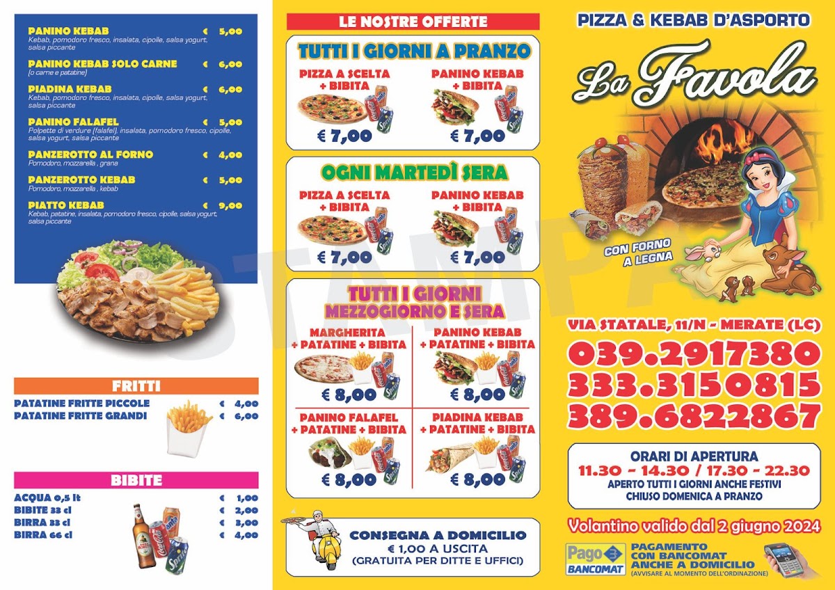 Pizzeria La Favola, nestled in Via Statale, Merate, offers a delightful fusion of traditional Italian pizza and flavorful kebabs, perfect for takeaway enthusiasts. The highlight is their authentic wood-fired pizza, praised for its quality dough and balanced toppings, delivering a taste that’s both rustic and refined. Customers appreciate the well-crafted integral crust, which is light yet satisfying, avoiding the common pitfall of burnt edges. Alongside their pizzas, their baked panzerotti provide a unique twist—less greasy and more wholesome, although slightly dry, they complement the menu well. The lunch fixed-price menu, featuring pizza plus a drink for just 5€, stands out for its value and convenience. Friendly and courteous staff add a warm touch to the experience, enhancing the cozy, somewhat hidden locale. While prices lean slightly higher, the quality and authentic flavors justify the cost, making Pizzeria La Favola a worthwhile culinary destination for takeaway lovers seeking Italian comfort food with a modern edge.